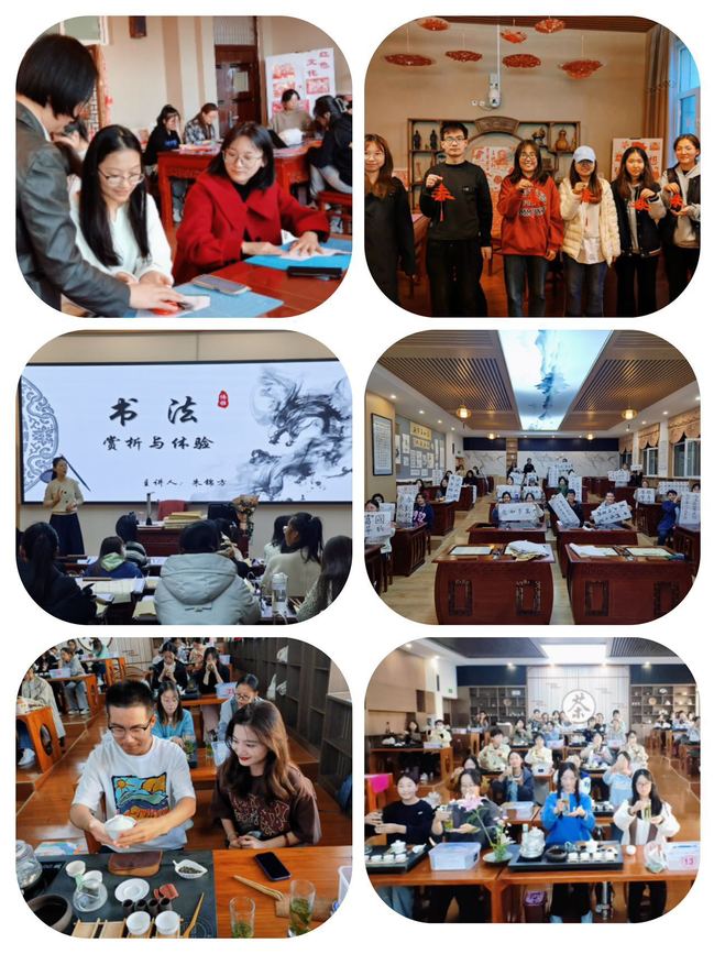 国际文化交流学院传统文化传习教研室开设《中华传统茶艺实践与体验》《中华传统茶文化与茶健康》《中国剪纸艺术体验与实践》《书法赏析与体验》课。在茶艺实践课上,学生通过品茶香、习茶礼、论茶艺、行茶道,领悟中华传统文化的博大精深,培养学生的审美情趣,更好地引导同学们继承发扬优秀传统文化,提高自身文化修养与艺术品味。剪纸课上,学生深刻体会到剪纸文化的博大精深,也更加珍视中华传统文化,并期待有更多的机会去了解和体验中华优秀传统文化,让这些宝贵的文化遗产在学生的心中生根发芽,薪火相传。书法赏析与体验课上,学生在教师的指导下,姿势端正,握笔规范,神情专注,用心书写每一个汉字,进一步认识和了解书法,学生们表示参加书法课受益匪浅,对自己今后的书法练习有很好的指导意义。
