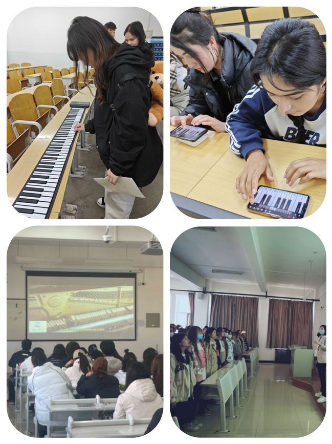 音乐学院大学音乐教研室开设《声震八方——丝绸之路上的鼓乐》《声音的相互交织——合唱体验》课。近百名学生通过聆听和演唱《黄河大合唱》了解抗日战争时期的悲壮历史。通过欣赏现代混声合唱《如果明天就是下一生》感受岁月流淌,感悟着珍惜时光的美好。通过《贝多芬第九交响曲“合唱”》感受和声的对位与和谐,体会着合唱传递的坚韧与和平的向往。在体验课上,有弹琴、有敲击空灵鼓的学生,完成了带伴奏的混声合唱作品。体验课以合唱形式让参与的学生体验歌曲带给大家的精神内涵,感受合唱的声音魅力,体会合唱的协作精神。
