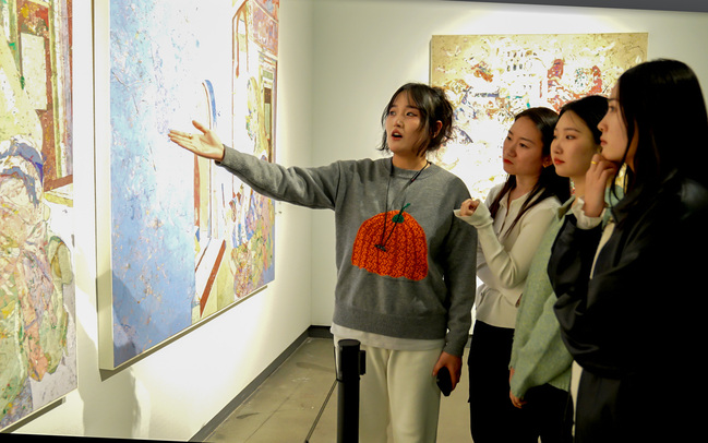 实践活动以美术专业与其他各专业学生交叉组队的形式开展,由美术专业研究生带队,从专业角度为其他专业学生介绍龟兹石窟壁画的题材和内容。通过细致认真的讲解,观展学生积极开展互动交流,大家在古今交映中感受文明对话,在传统与当代之间找到新的链接点。观展学生纷纷表示,此次展览既具有穿越千年的艺术氛围,又呈现出龟兹壁画前世今生的发展脉络,帮助大家获得了超越时空的文化体验和艺术感受,使一次美的探索之旅。
