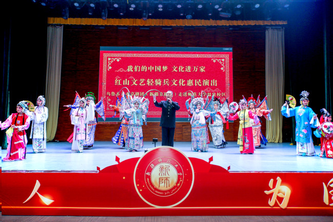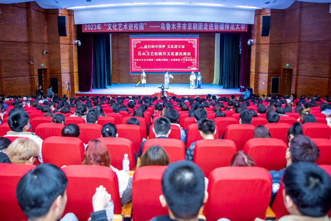 为深入学习宣传党的二十大精神,深入推进文化润疆工程和铸牢中华民族共同体意识教育落地落实,全面加强和改进学校美育工作,推进学校校园文化建设,根据自治区教育厅、自治区文化旅游厅《关于开展2023年文化艺术进校园活动的通知》安排,永利官网于3月15日、16日在昆仑校区、温泉校区举办了文化艺术进校园活动首演——乌鲁木齐市京剧团走进yl6809永利官网专场演出。校党委副书记刘俊,党委常委、宣传部部长高靖出席并观看。