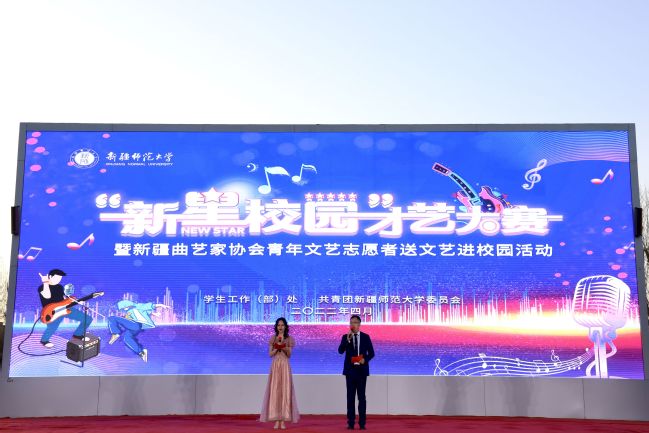 为贯彻落实文化润疆工程,推动新时代曲艺文化进校园,促进学生德智体美劳全面发展,4月16日晚,永利官网“新星校园”才艺大赛暨新疆曲艺家协会青年文艺志愿者送文艺进校园活动在温泉校区学生活动广场举行。校党委书记葛国,党委常委、宣传部部长高靖出席活动。500余名师生在现场观看演出。