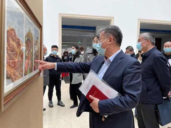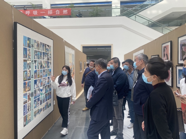为进一步推动高校美育向纵深发展,营造浓厚的校园艺术氛围,提升学生审美素养,4月19日下午,由学校美育中心、图书馆和美术学院联合举办的“遇见未来”2022届毕业生优秀美术作品展在温泉校区图书馆开展。校党委书记葛国,党委常委、副校长王晓峰,党委常委、副校长帕力旦·吐尔逊,党委常委、宣传部部长高靖,党委常委、组织部长李建荣参观了展览。