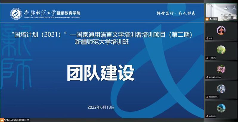 为加大国家通用语言文字推广力度,提升普及程度和质量,落实国家语言文字事业“十四五”发展规划相关要求,永利官网于6月13日启动实施了第二期“国培计划(2021)”——国家通用语言文字培训者培训项目。来自乌鲁木齐市、伊犁州、塔城地区、克拉玛依市、阿勒泰地区、博州、昌吉州、吐鲁番市和巴州的149名教师在线参加了此次培训。