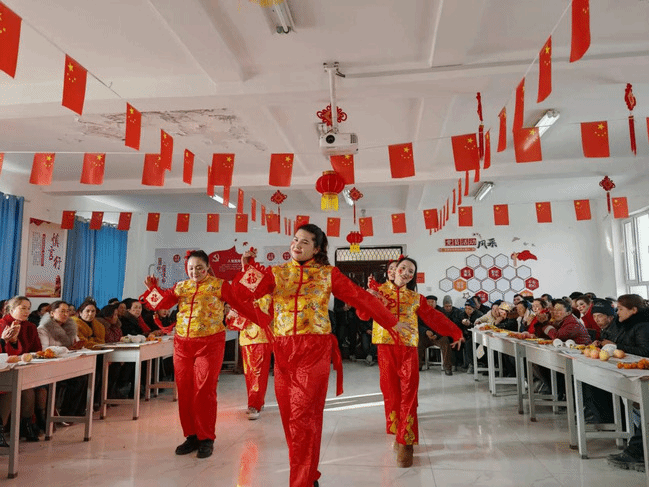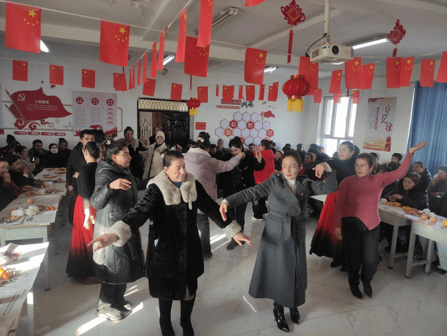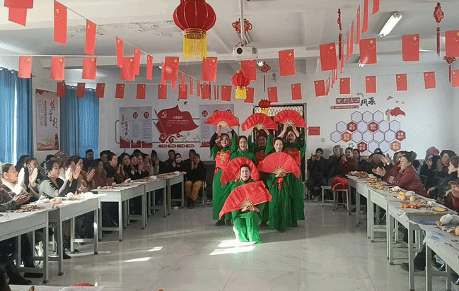 活动在欢快喜庆的舞蹈《拜新年》中拉开了序幕。村文艺小分队还表演了舞蹈《喜事盈门》《石榴相依》《好运来来来》,歌曲《歌唱祖国》等精彩的节目,为台下观众带来了一场视觉的盛宴,村民们用音乐传递着祝福,用舞蹈表达着喜悦。随后,村民还参与了抢凳子、击鼓传花等趣味游戏,更是让现场欢笑声不断。