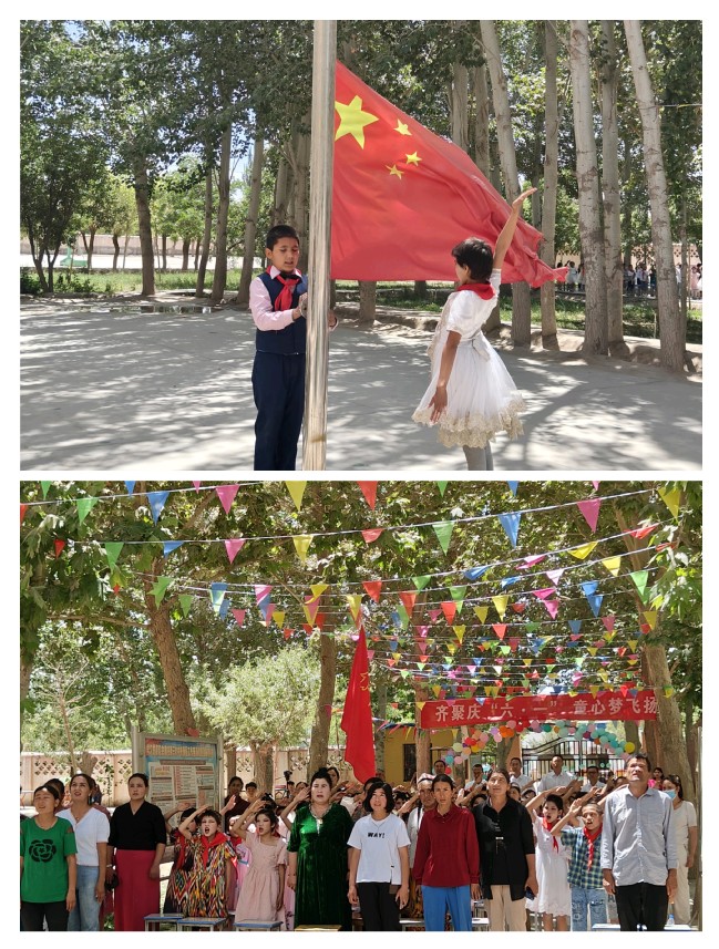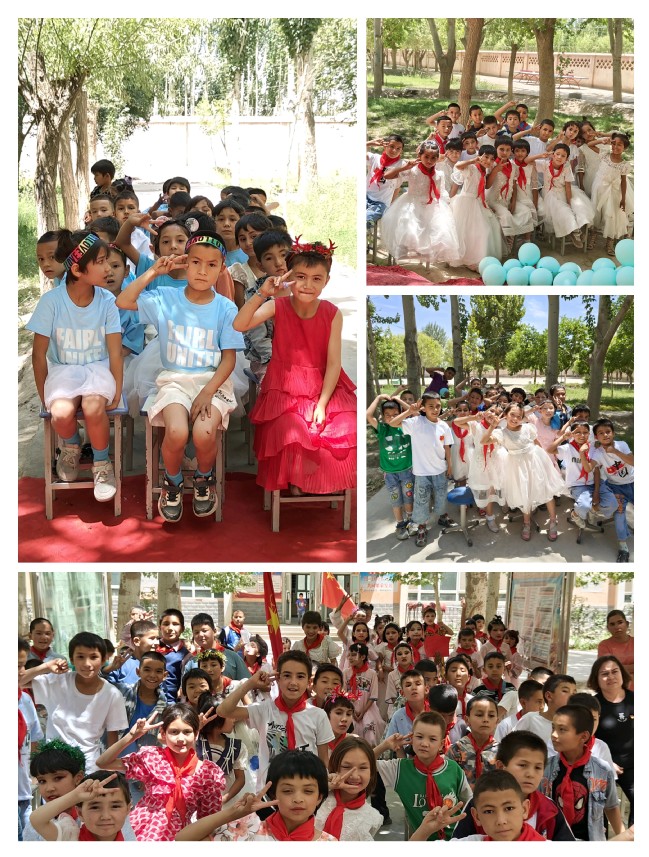 送温暖,勉励学生努力学习。驻村工作队联合村“两委”和希望小学于5月31日下午举办“齐聚庆‘六·一’,童心梦飞扬”欢庆儿童节活动,工作队、村“两委”、爱心人士、学生家长代表和全校师生190余人参加。活动由夏迪耶·阿卜杜拉老师和迪力夏提·亚森同学主持。活动在嘹亮的国歌声中拉开帷幕,随后由8名少先队员向爱心人士系戴红领巾。在前期充分沟通和精挑细选,工作队向希望小学全体学生捐赠160余套学具和62套运动服作为节日礼物。收到礼物的三年级阿卜杜赛麦提·阿不力米提同学高兴的说:“感谢yl6809永利官网驻村工作队的支持和帮助,我一定用好这些学习用品努力提高学习成绩。”三年级伊尔夏提江·图尔荪尼亚孜激动地说:“收到工作队赠送的运动服很高兴,我要努力学习科学文化知识,以后为建设家乡贡献自己的一份力量。”