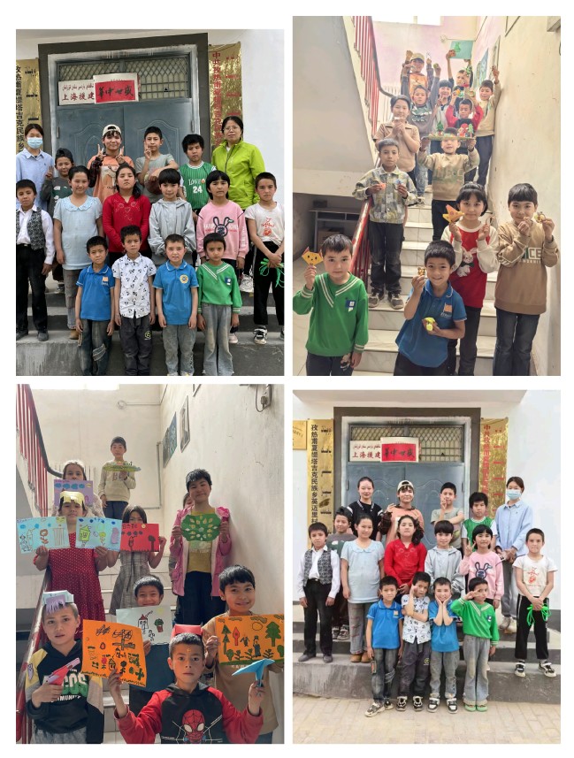 送教育,小课堂丰富学生课余生活。驻村工作队积极发挥后盾单位优势,持续开展集爱国主义教育、安全教育、兴趣培养、体育锻炼、作业辅导、习惯养成等于一身的周末小课堂活动,指定专人负责并每周商议课程计划,认真备课准备,定期添加所需物资,确保小课堂安全有序开课。4月中旬开课以来,英迈里村周小课堂已累计授课8次120余人次。小课堂学员麦鲁达木·麦麦提说:“周末小课堂真的太有趣啦!我学到了好多新奇的知识和不同的解题方法,而我最喜欢的就是画画和手工。通过小课堂,我更敢于表达想法,也变得更自信了”。学员杰苏尔·艾尼说:“每周我都会去小课堂,开展的作业辅导、手工制作、画画、毛笔字、丢沙包等活动丰富了我的周末生活”。