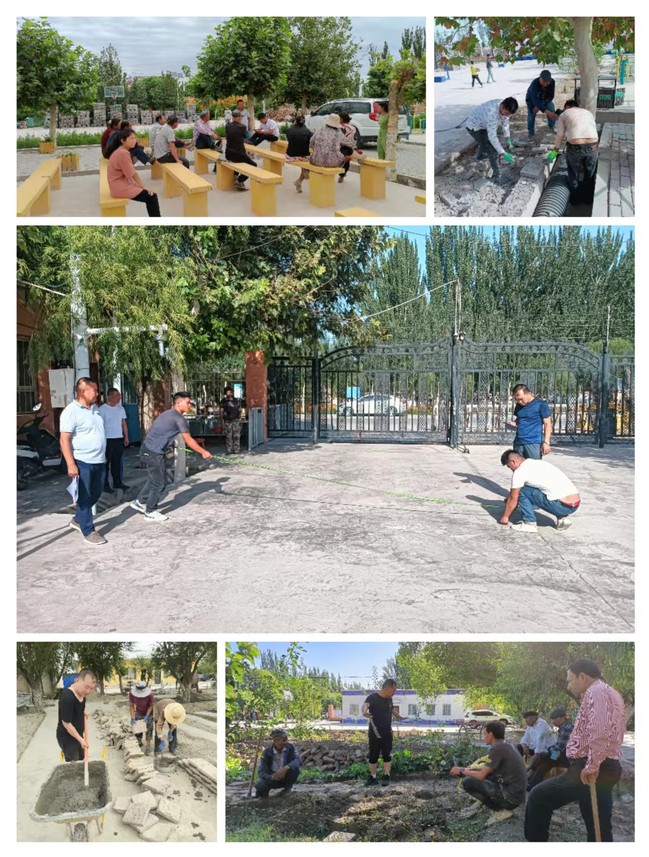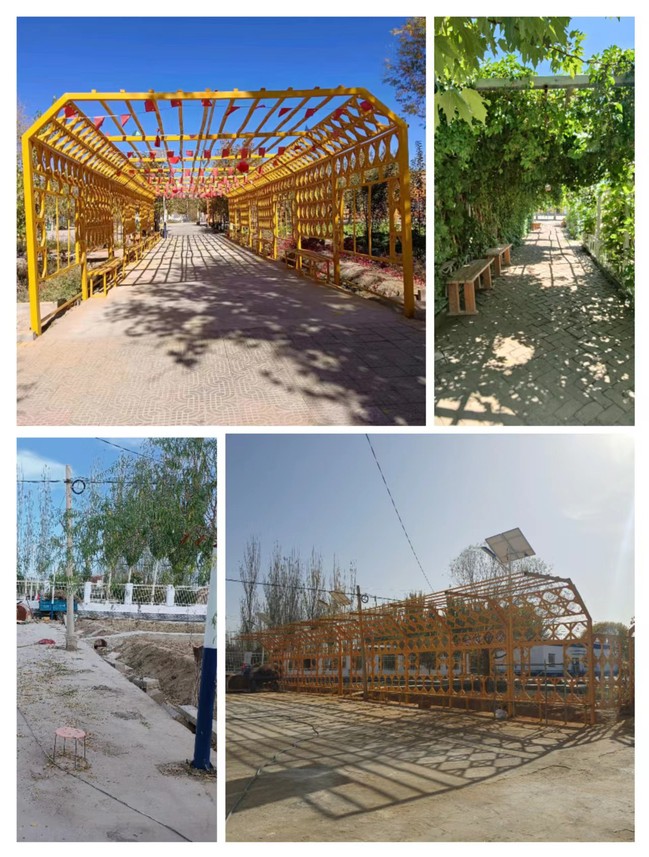 村委会大院是全村发展的缩微图和晴雨表,随着国家乡村振兴战略的持续实施,村容村貌持续发生变化,而村委会大院的公共区域和办公区域也呈现出后续建设跟进不足的问题。为了解决这些问题,yl6809永利官网驻莎车县孜热甫夏提塔吉克民族乡团结村工作队和英迈里村工作队积极商议,整体谋划、实施“石榴大院”美化工程。在充分听取村“两委”干部、村民意见建议的基础上,工作队于2023年6月至10月实施了美化亮化大门、搭建葡萄长廊、改善办公条件、修缮旗杆及主席台、粉刷工作队驻地、粉刷围墙及警务室并修建30米葡萄绿廊等“七大工程”,将“石榴大院”改造成白墙灰瓦的徽派风格,广受当地干部群众的好评。