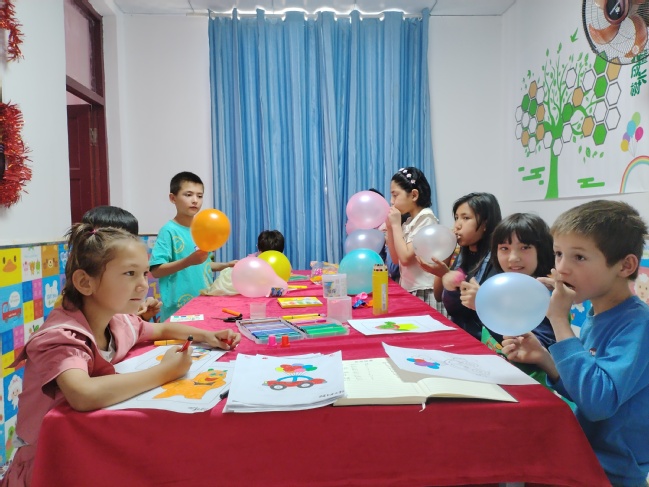 “老师,我特别喜欢画画,但是家里条件有限,不能买很多彩笔去画五颜六色的物品。现在有小课堂了,能用彩笔画自己喜欢的、好看的画,我好高兴呀!” 5月13日第一次参加团结村周末小课堂的小朋友阿依孜巴·图尔荪尼亚孜对老师开心而真诚的说。