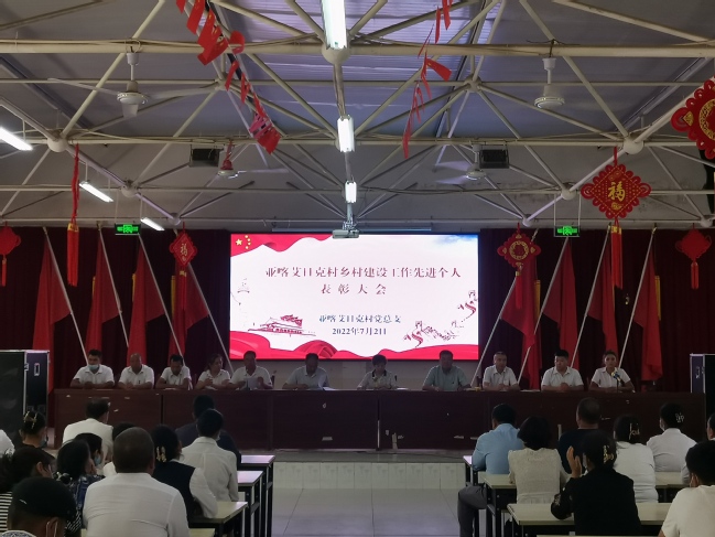 为进一步落实落细《乡村建设行动实施方案》,切实把乡村建设摆在社会主义现代化建设的重要位置,顺应农民群众对美好生活的向往。7月2日,亚喀艾日克村2022年乡村建设工作先进个人表彰大会在村便民服务中心大厅召开。第一书记、工作队队长孙秀玲、亚喀艾日克乡党委书记梁秀超、“访惠聚”工作队成员、村两委干部、村务监督委员会成员、村民小组长、获表彰先进个人、村民代表等近200人参加了会议。会议由阿不拉·玉素甫同志主持。