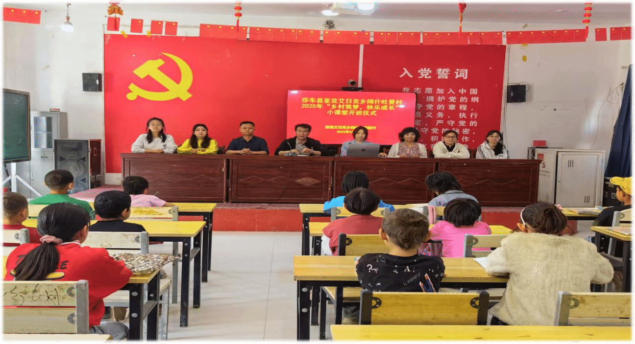 亚喀艾日克乡亚喀艾日克(8)村工作队组织了“巧手制风车、童心随风舞”手工创作、“谷雨润万物,文化共传承”节气科普、“童声诵经典,书香满乡村”朗诵比赛和“劳动教育润童心,多彩活动庆五一”系列活动等。组织劳动教育,工作队队员带领孩子们化身“环保小卫士”,手持垃圾袋,分组清理村委会周边的废弃物。开展体育比拼,工作队策划的乒乓球比赛吸引众多孩子参与。活力青春联动,黏土画里迎立夏,工作队邀请7名青年志愿者与孩子们共同创作节气粘土画,感受传统文化的魅力。亚喀艾日克乡阔什吐格曼(6)村工作队专门制定了《2025年“乡村筑梦,快乐成长”小课堂实施方案》,并举行了“乡村筑梦,快乐成长”小课堂教育活动启动仪式。工作队成员和实习支教学生带领孩子们开展了舞蹈音乐教学、户外体育趣味竞技和红色电影展播等活动。