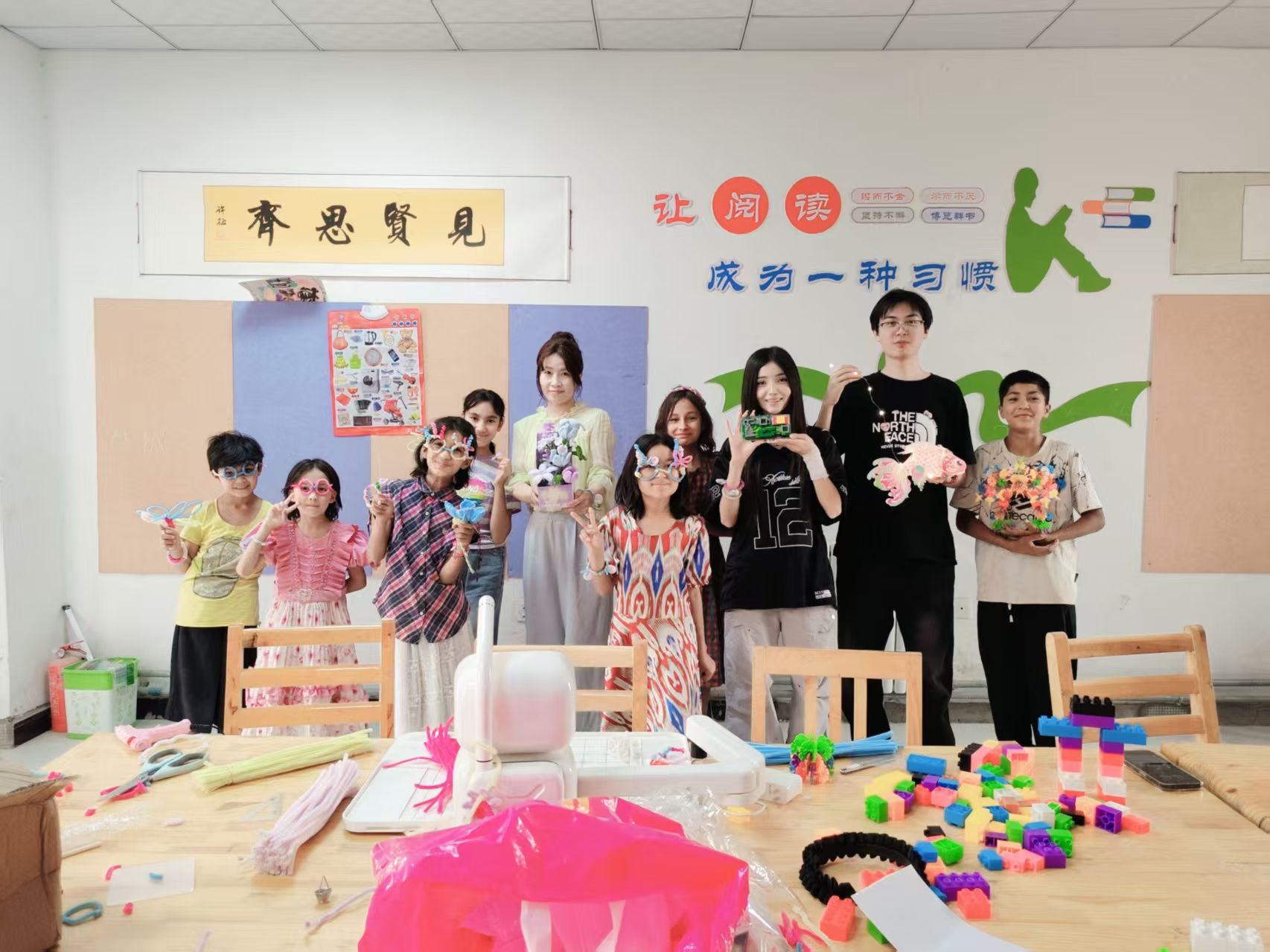 亚喀艾日克乡阔什吐格曼(6)村工作队开展“笔绘梅竹承古韵,手筑积木启新思”“艺织扭花传古韵,舞绽华风拓新程”中华传统文化特色小课堂,组织孩子们学画国画、搭积木、下象棋,制作扭扭花、编练舞蹈,指导青少年感受书法艺术蕴含的深厚文化底蕴。