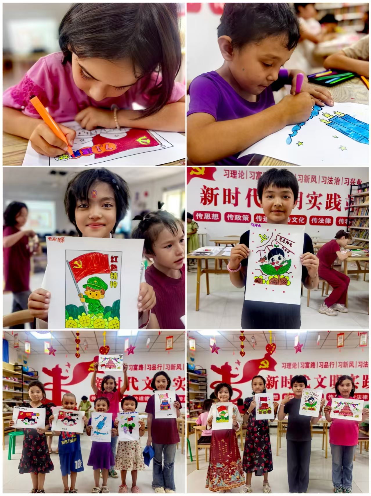 活动中,大家首先聆听了由工作队队员张锐老师为孩子们讲授的爱国主义教育课。她用通俗易懂的语言、轻松活泼的方式讲述了祖国和家乡过去与现在的巨大变化,通过今昔对比,引导孩子们深刻认识到今天的幸福生活离不开党的领导和奋斗。通过组织观看红色教育短片《党的诞生》,学唱歌曲《童心向党》,描绘主题画等活动让孩子们对党的情感逐步升华,孩子们用稚嫩的歌声和充满童真的画作向党的生日献礼,表达对党的敬意。