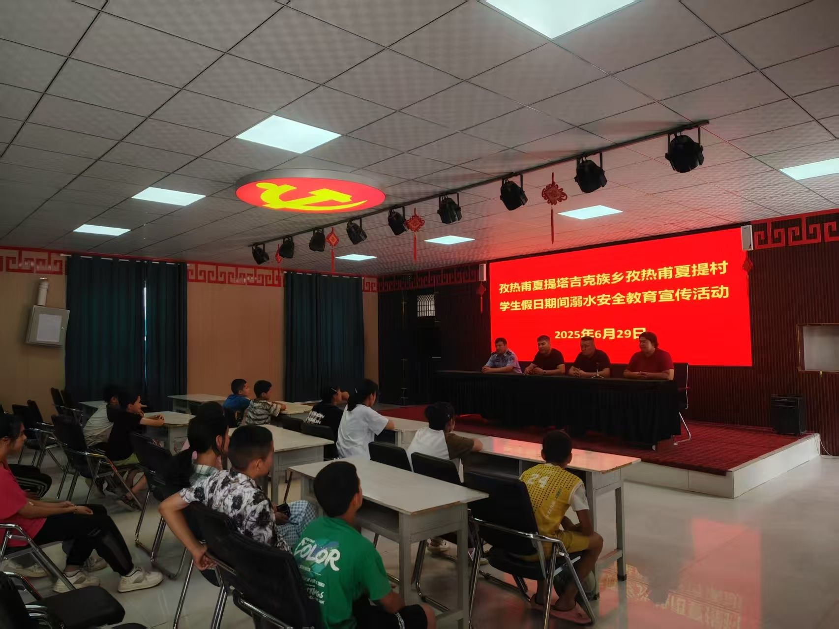 孜热甫夏提塔吉克族乡孜热甫夏提(3)村工作队联合村“两委”、村警务室开展“筑牢暑期安全防线、守护青少年健康成长”教育小课堂。通过案例讲解、互动问答等形式,重点开展防溺水、交通安全、用火用电等安全教育,增强学生的安全防范意识。