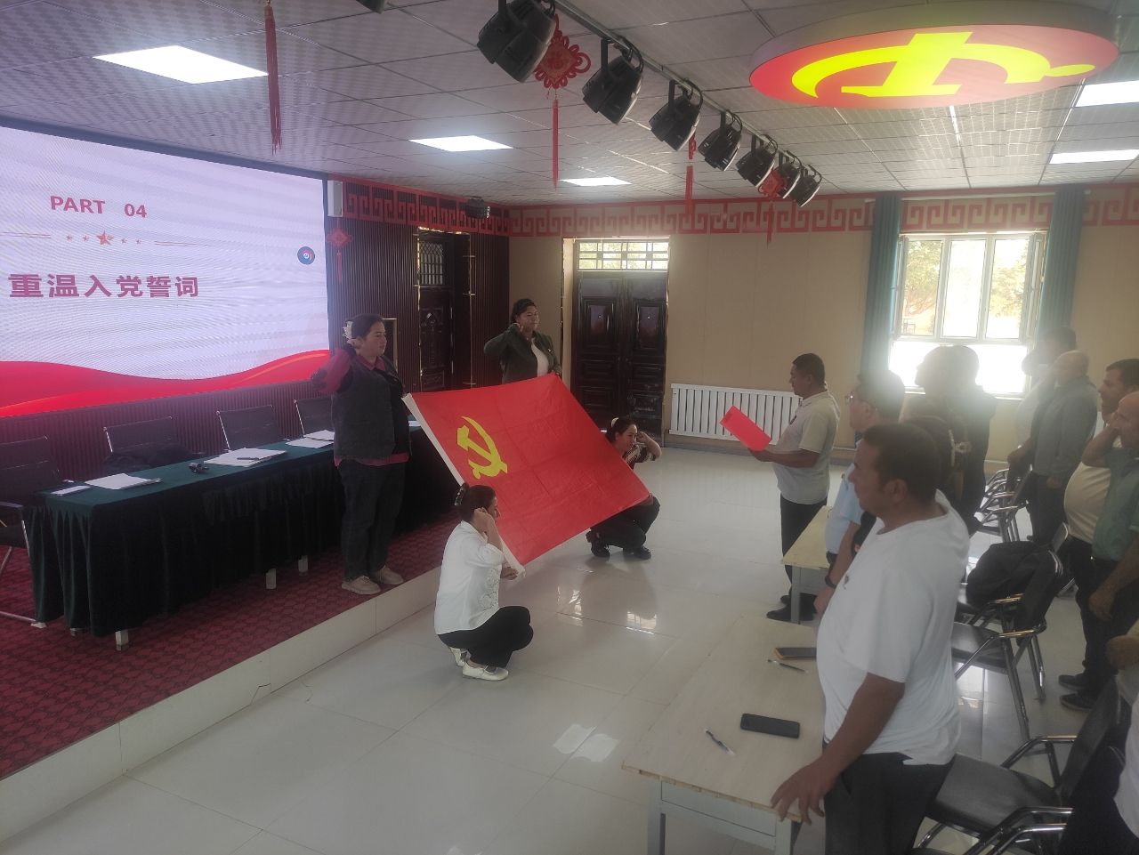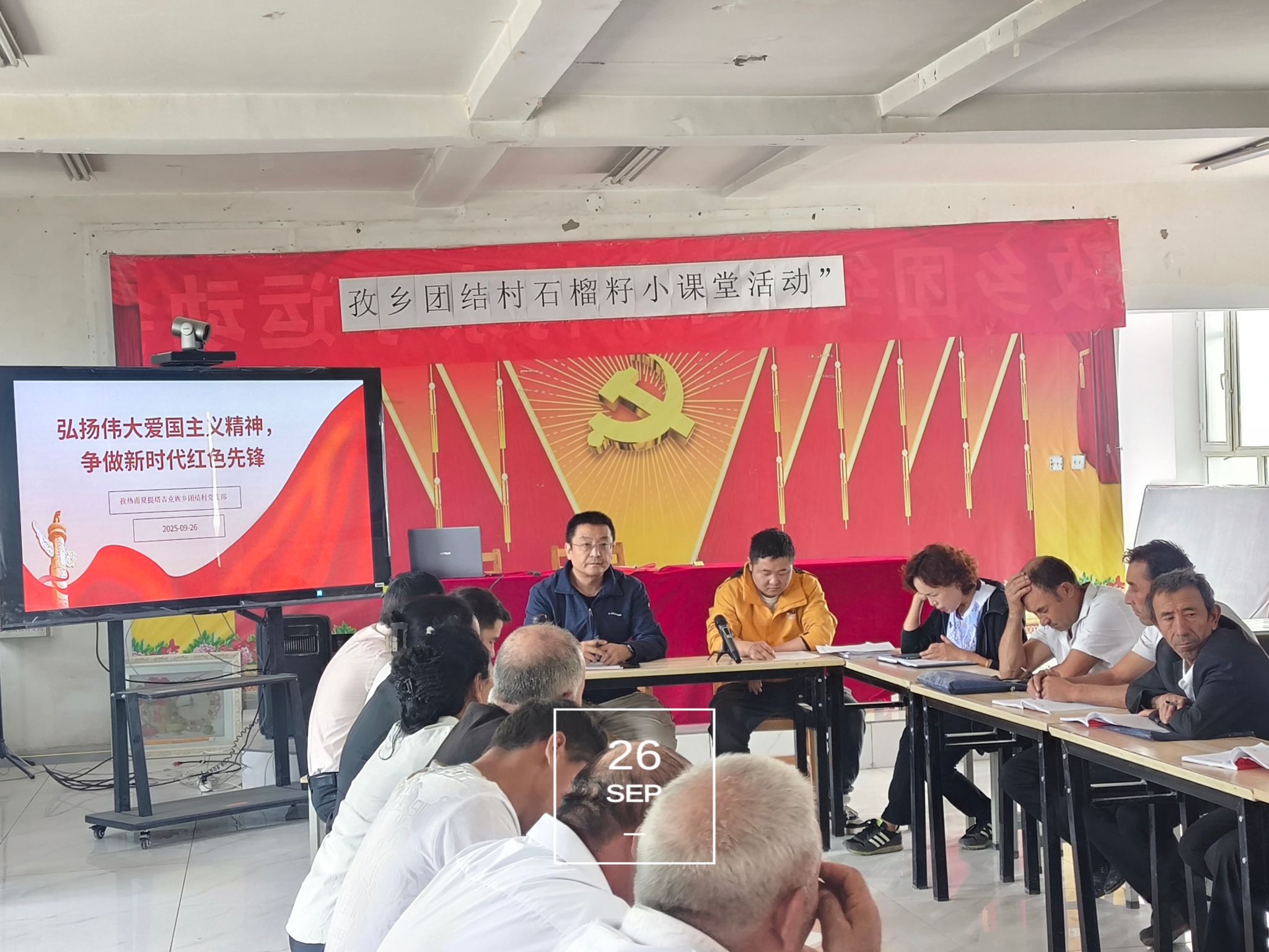 孜热甫夏提塔吉克族乡孜热甫夏提(3)村工作队党支部联合村党支部带领党员重温入党誓词和接力诵读党章,组织观看红色电影《建国大业》,组织“四老人员”畅谈学习心得。团结(4)村工作队党支部联合村党支部组织党员面向鲜红的党旗庄严宣誓。党员代表结合活动主题,分享了自身学习感悟,现场交纳了党费,开展志愿服务活动,为村委会悬挂国旗彩旗。喀勒提拉(9)村工作队党支部组织老党员代表畅谈学习心得。英迈里(12)村工作队党支部联合村党支部为党员进行爱国主义教育,讲述抗日战争伟大胜利的光辉历程,引导党员干部时刻牢记初心使命。