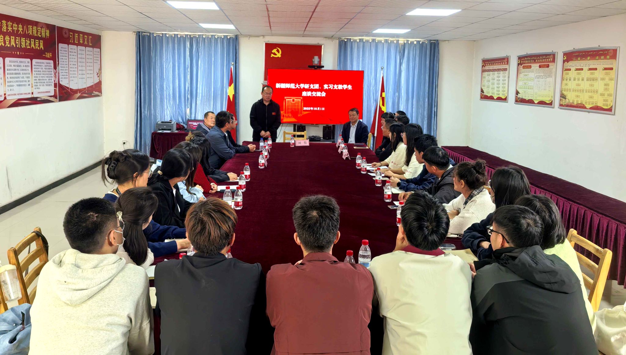 调研期间,刘俊与学校选派参加亚喀艾日克乡中心小学支教的研支团、实习学生及各驻村工作队队员进行了座谈交流,认真听取了大家的生活工作情况汇报,同时传达了学校党委的嘱托与关怀,以及学校师生参与自治区成立70周年庆祝活动的情况和热烈反响。他强调,大家要深入学习贯彻习近平总书记率中央代表团出席自治区成立70周年庆祝活动期间的重要讲话重要指示精神,牢记嘱托、感恩奋进,进一步铸牢中华民族共同体意识、推进中华民族共同体建设,加强文化润疆、注重以文化人,促进各民族广泛交往交流交融、传承中华优秀传统文化,推进国家通用语言文字教育教学,推动驻村工作任务扎实落地,实现实践育人与乡村振兴双向赋能,用心用情为群众办实事、解难题。