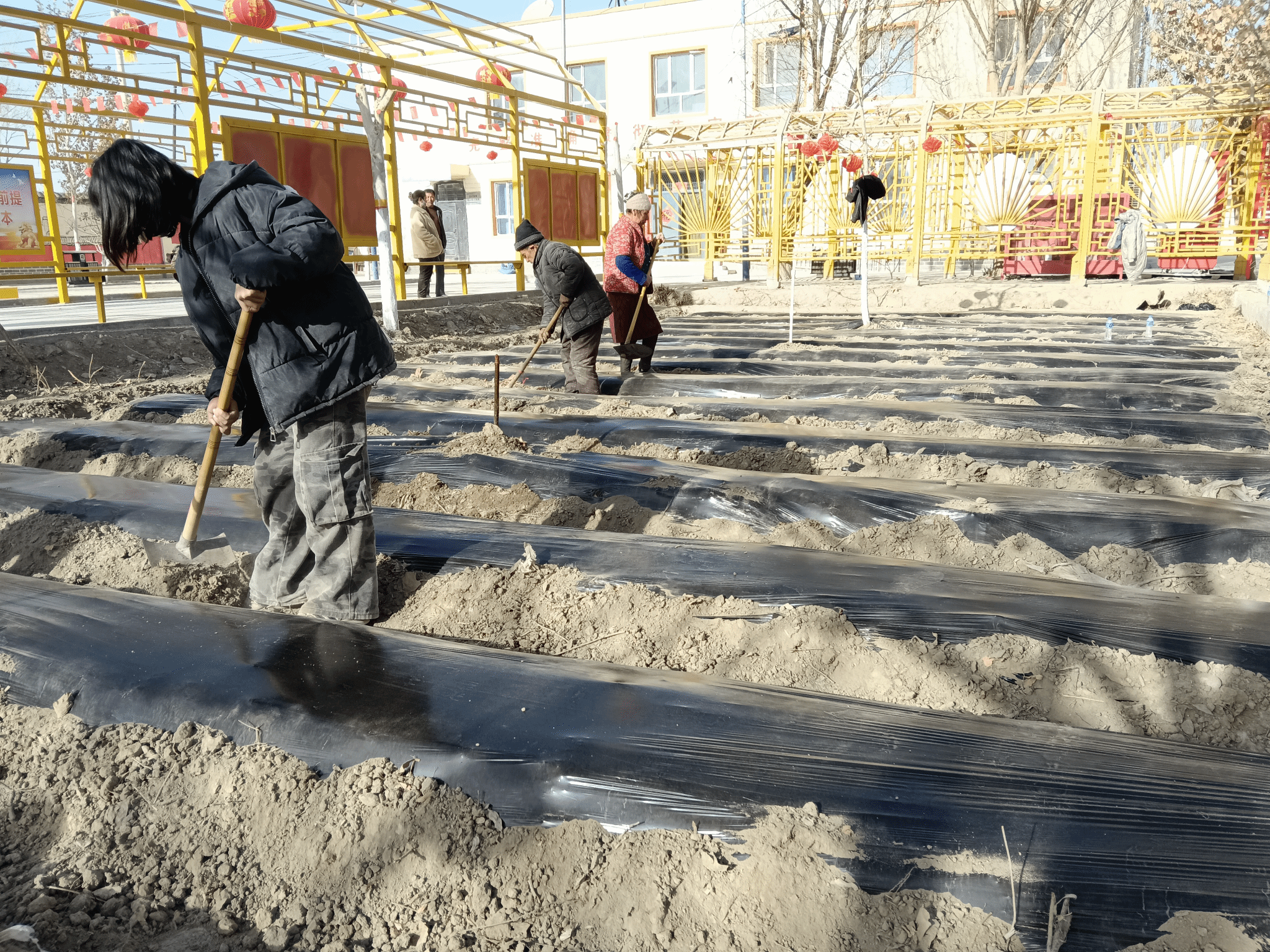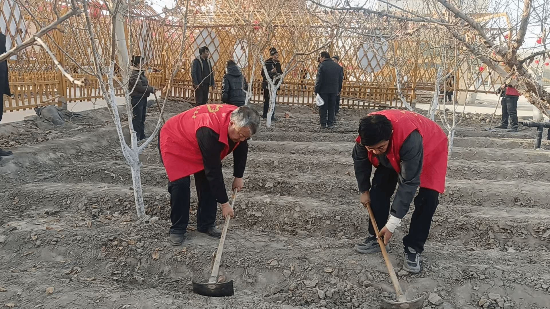 孜热甫夏提塔吉克族乡喀勒提拉(9)村工作队党支部联合村党支部组织党员学习习近平总书记关于全面推进乡村振兴重要论述,开展了“党旗飘扬在院中、劳动备耕正当时”志愿服务活动,平整村委会院内地块。既强化了理论武装、凝聚了思想共识,又夯实了春耕生产基础。