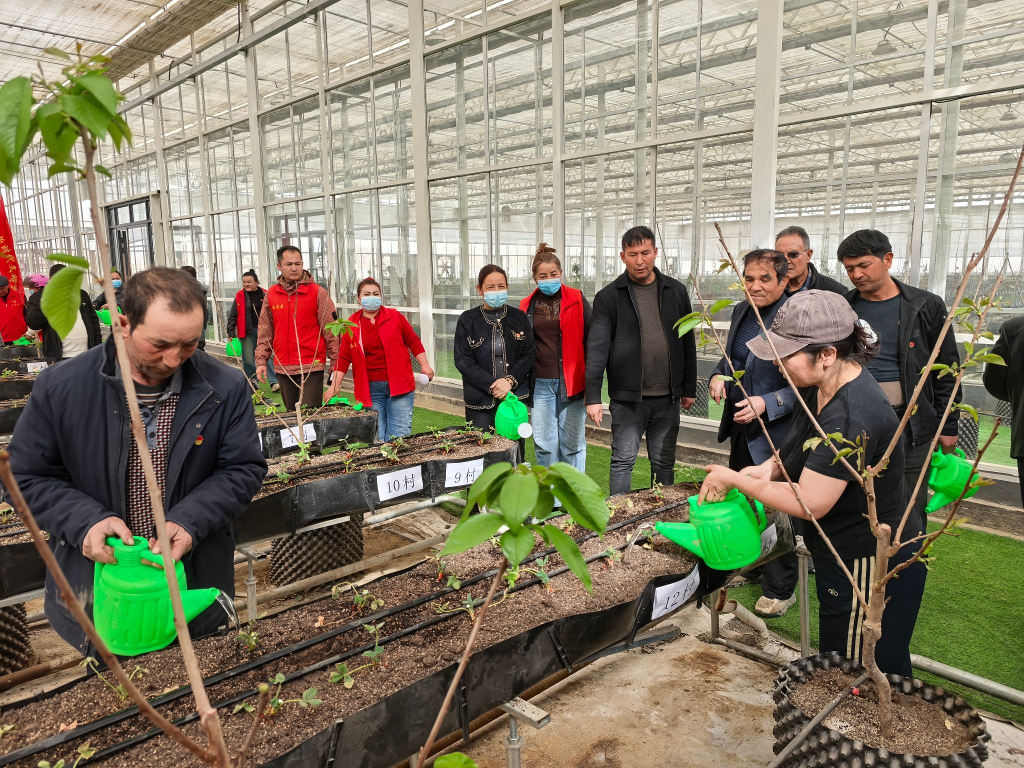 孜热甫夏提塔吉克族乡孜热甫夏提(3)村工作队党支部联合村党支部组织党员学习《中共中央、国务院关于锚定农业农村现代化扎实推进乡村全面振兴的意见》等文件精神,重温入党誓词和接力诵读党章,观看关于中央农村工作会议的新闻简讯。慰问困难群众,组织党员在村现代农业产业项目玻璃温室大棚进行补植补种草莓和浇水施肥的劳动。