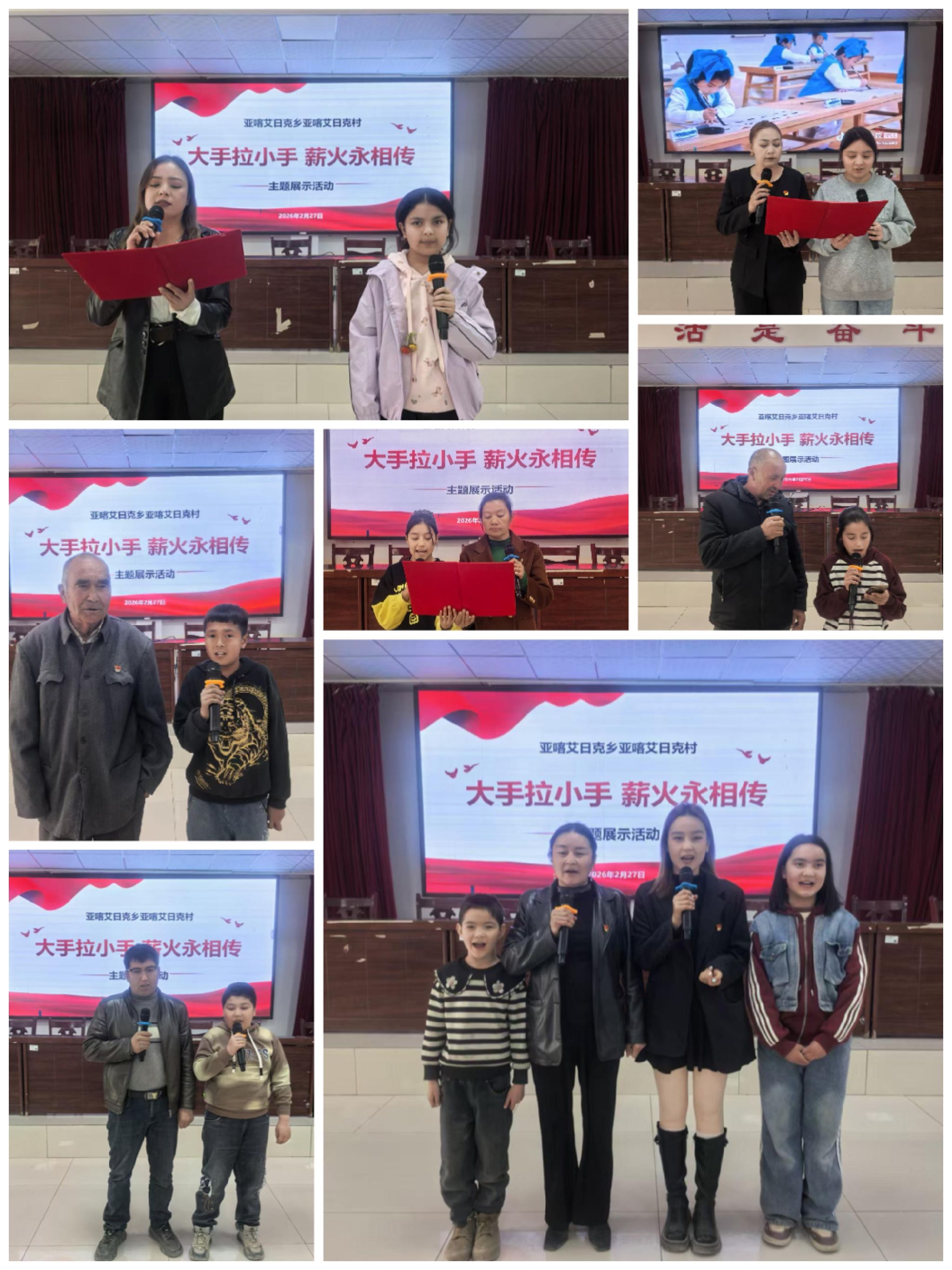 亚喀艾日克乡亚喀艾日克(8)村工作队党支部联合村党支部组织党员重温入党誓词,观看“党徽大叔”阿布都加帕尔·猛德的先进事迹和新疆牧民策马踏雪送奥运健儿出征的感人视频。组织开展了“大手拉小手、薪火永相传”活动,通过党员与子女同唱一首红歌、共讲一个红色故事、齐颂一首爱国诗歌的形式,搭建起红色传承的桥梁。