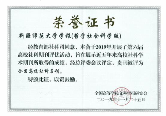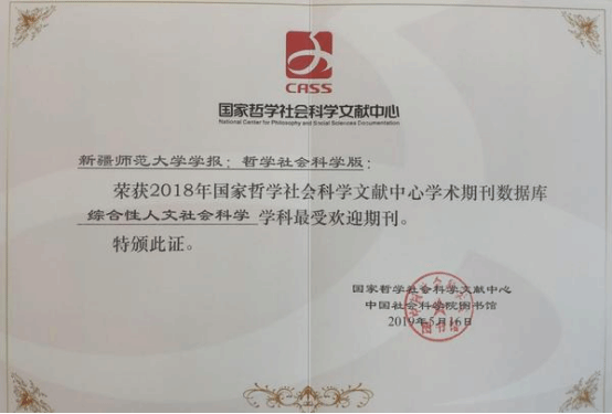 近年来,学报办刊经验得到了党和政府以及期刊界同仁的一致好评。截至目前,学报已荣膺“全国百强报刊”、“国家社科基金重点资助期刊”(连续多年被定等为“优秀”的期刊,在国家社科基金重点资助200家期刊中只有3家)、连续6届获得“新疆期刊奖”等殊荣;学报连续入选“中文社会科学引文索引(CSSCI)来源期刊”、“全国中文核心期刊”、“中国人文社科核心期刊(AMI)”、“RCCSE中国权威学术期刊”等核心期刊目录,成为全核心期刊;学报“一带一路”“中国学派”“宣传贯彻党的十九大精神”等专题栏目连续获得专项资助,成为全国受国家社科基金资助金额最高的期刊。据《中国学术期刊影响因子年报》显示,学报复合影响因子为 3.312,已连续三年影响因子蝉联全国高校综合类学报第1名。另据《世界学术期刊学术影响力指数(WAJCI)年报》显示,在13063种世界范围内传播较广、影响面较大、学术影响力较强的学术期刊学术影响力指数排名中,学报位居世界学术期刊学术影响力指数(WAJCI)Q2区中国社科期刊第1位,办刊国际显示度和美誉度明显提升。